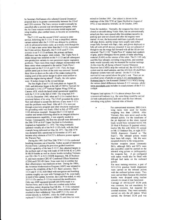 - F-111E 68-0068 from the 79th TFS, 20th TFW at RAF Upper Heyford during 1974. Painted in the standard South East Asian scheme of FS34079, FS34102 and FS30219 with black undersides. "JT" tailcode and AF68 068" in white on the fin;