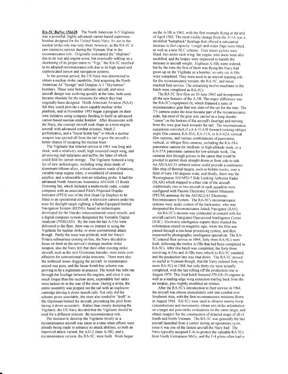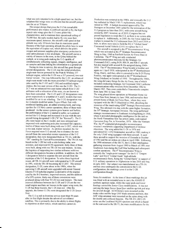 | Types Featured | RA-5C, U-2R, RF-101C, SR-71A, RF-4C, C-130B-II |