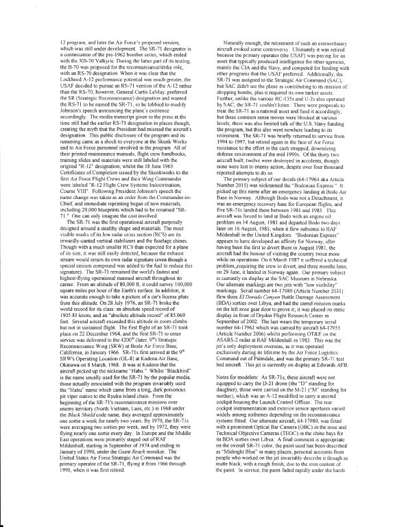 - SR-71A 64-17955 from Det 4 of the 9th SRW based at RAF Mildenhall during 1983. This was an ASARS bird