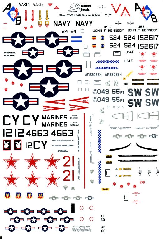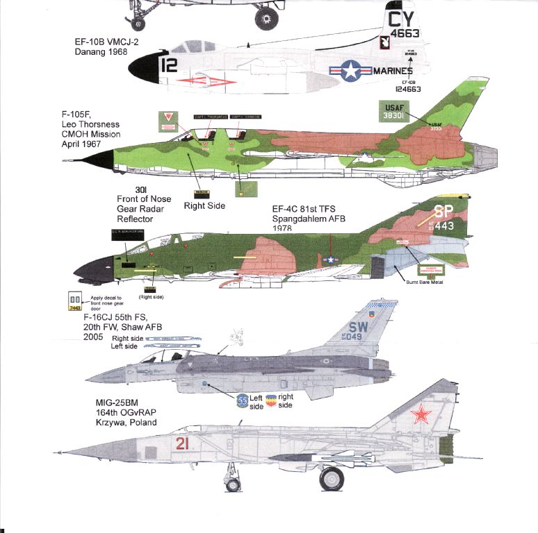 Sheet 72-031 from Wolfpak Decals covers a wide range of subjects, including the F-4D, F-105F and F-16CJ:-