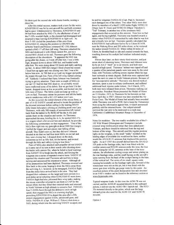 - F-105F-1-RE 63-8301, painted in the standard SEA scheme. This aircraft was flown by Captain Leo K Thorsness on April 19 1967