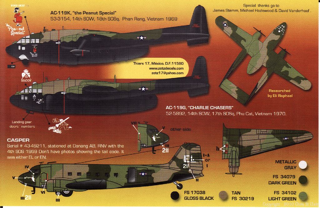 - AC-119G 52-5892 "Charlie Chasers" from the 17th SOS, 14th SOW based at Phu Cat AB, Vietnam during 1970. Again painted in the standard SEA scheme;