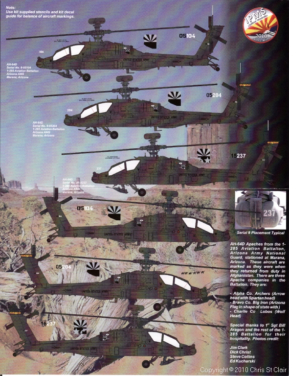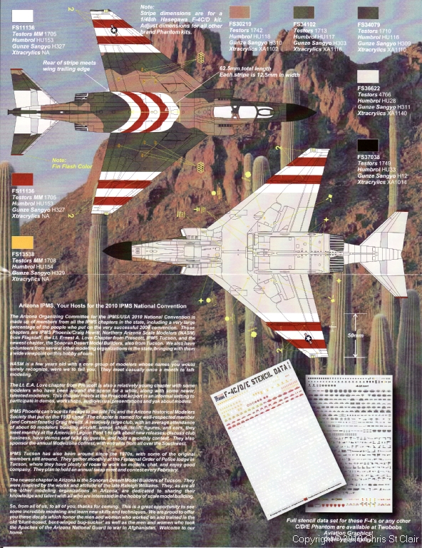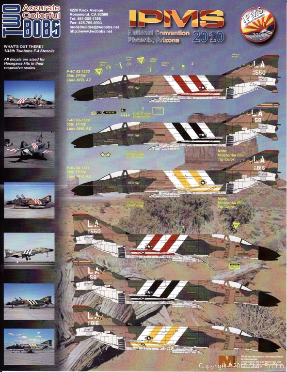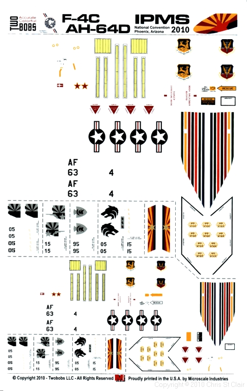 Each year, IPMS USA sponsors a special decal sheet which is only available at their National Convention. To celebrate this year's event, held in Phoenix, Arizona, Two Bobs have produced a sheet focusing on aircraft from Arizona-based units. Two specific units and types have been chosen - F-4Cs from the 58th TFTW in special high-vis markings, and AH-64Ds from the Arizona Army National Guard.