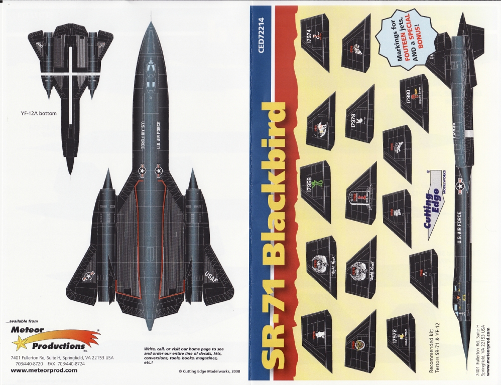 A much-awaited release from Cutting Edge, this covers 14 different SR-71A/B and YF-12A Blackbirds The decals are very thin with minimal carrier film and the registration seems to be spot on. The airframes covered are:-