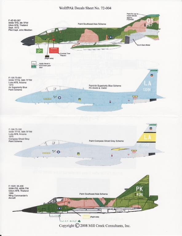 For each airframe, WolfPak include a side view with details of where individual markings are placed, copies of the relevant page of TO 1-1-4, and additional photographs where relevant. These are black and white photocopies, with the side views in colour.