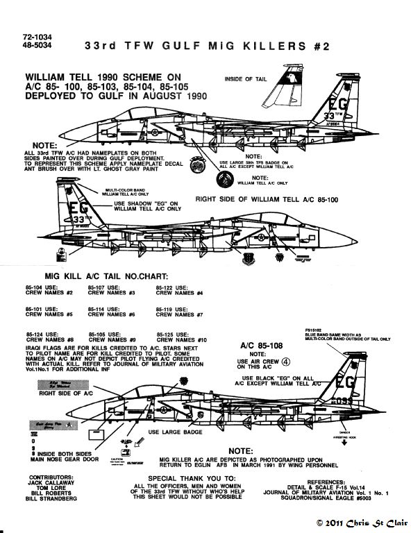 | Decal Sheet Title | F-15C 33rd TFW Gulf MiG Killers #2 |