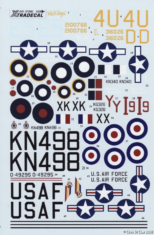 No stencils are provided with the sheet, but the whole sheet is nicely printed and in-register. However, I'm not sure if the "USAF" markings should be in black or Insignia Blue - also, the stars and bars appear a little too light to me.