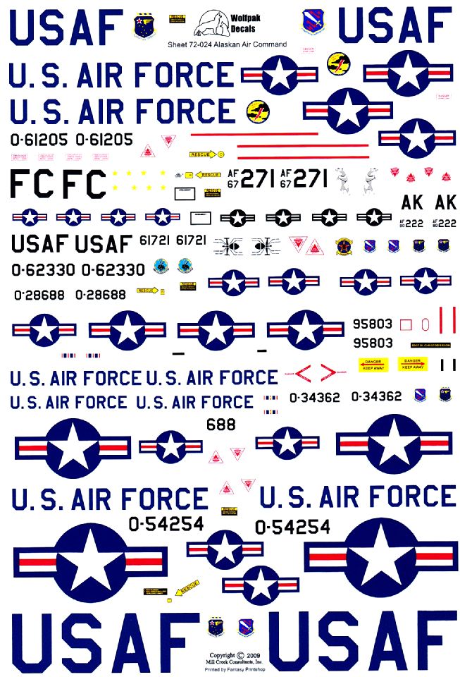 If you like natural metal / aluminium aircraft from the '50s, or have a think for Alaskan aircraft, Wolfpak Decals sheet 72-024 will appeal as it contains markings for no less than 8 different types.