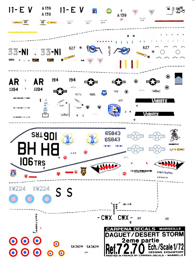 Sheet 72.70 from Decals Carpena features a number of subjects from Desert Storm, including an A-10A from the 511th TFS and an RF-4C from the 106th TRS.