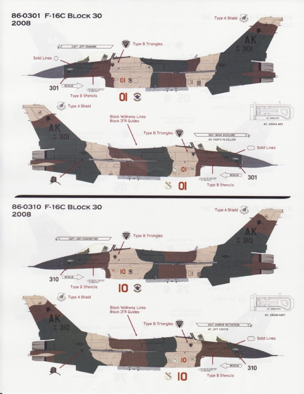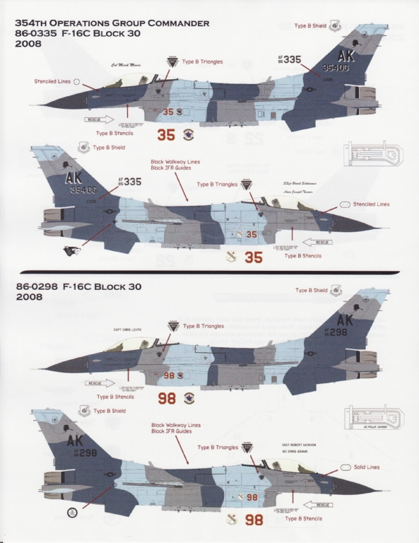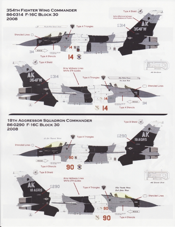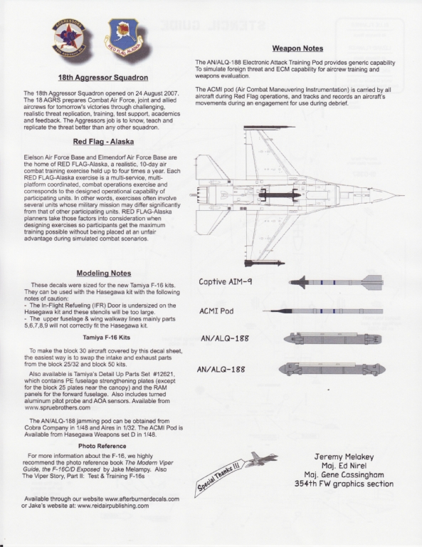This is, to say the least, another much awaited sheet! The 18th AS has now taken on an Aggressor role, and are in the process of painting up their F-16’s in 3 schemes.