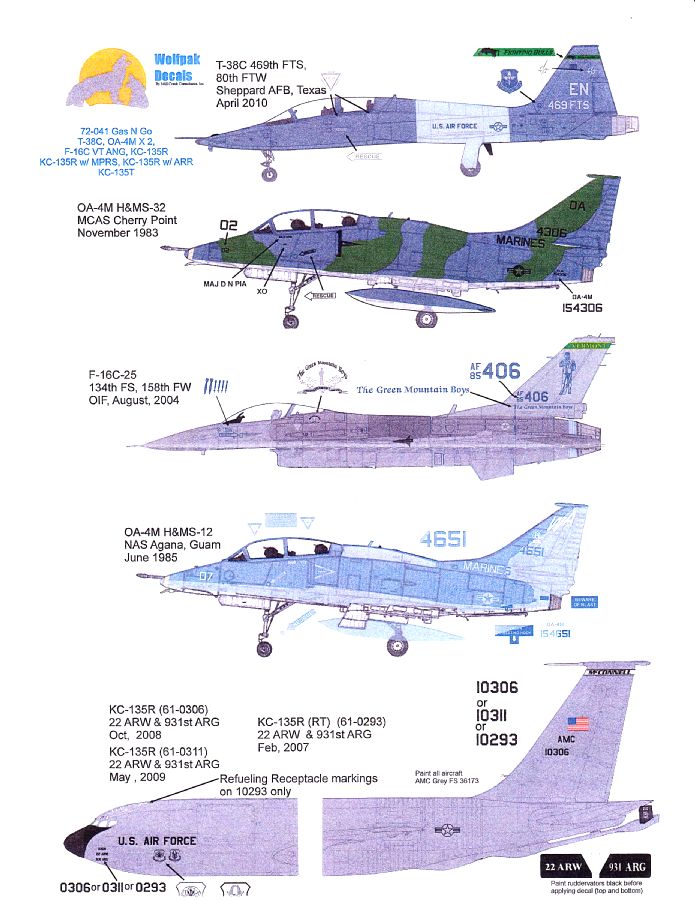 This sheet from Wolfpak Decals covers a number of interesting subjects. The USAF airframes covered are as follows:-