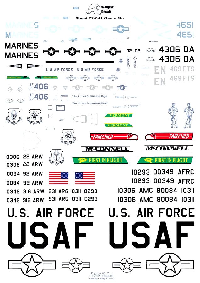 The sheet is beautifully printed (by Fantasy Printshop), in perfect register, and contains enough markings for each of the main types, and one KC-135R/T.