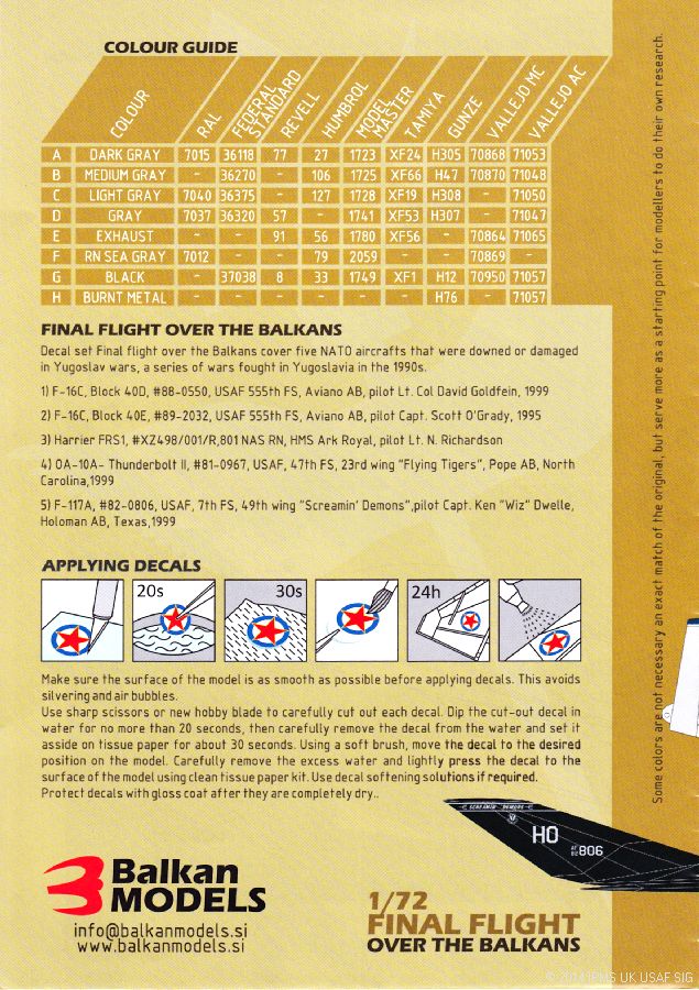 | Decal Sheet Title | Final Flight Over The Balkans |