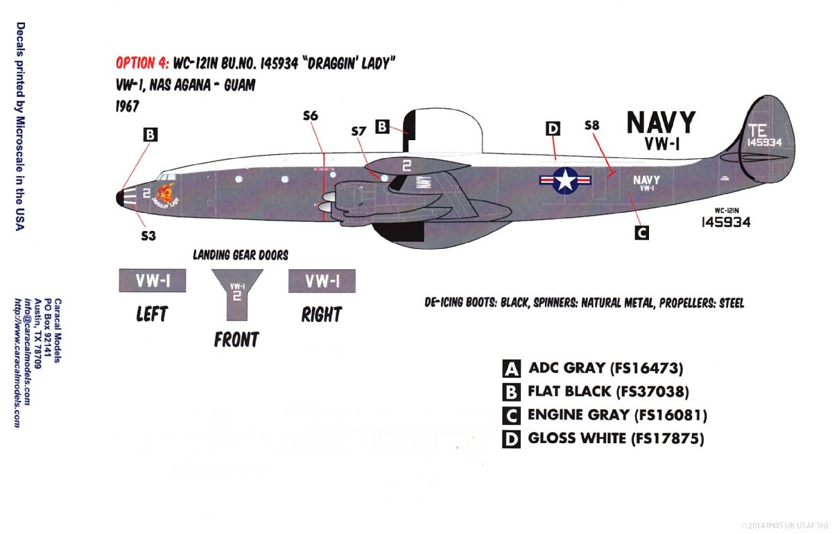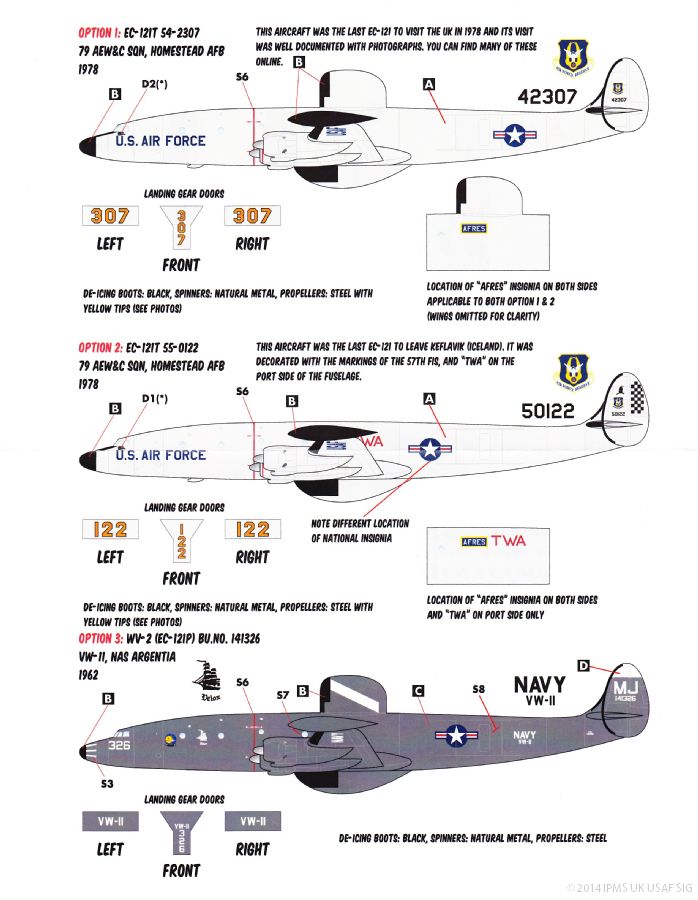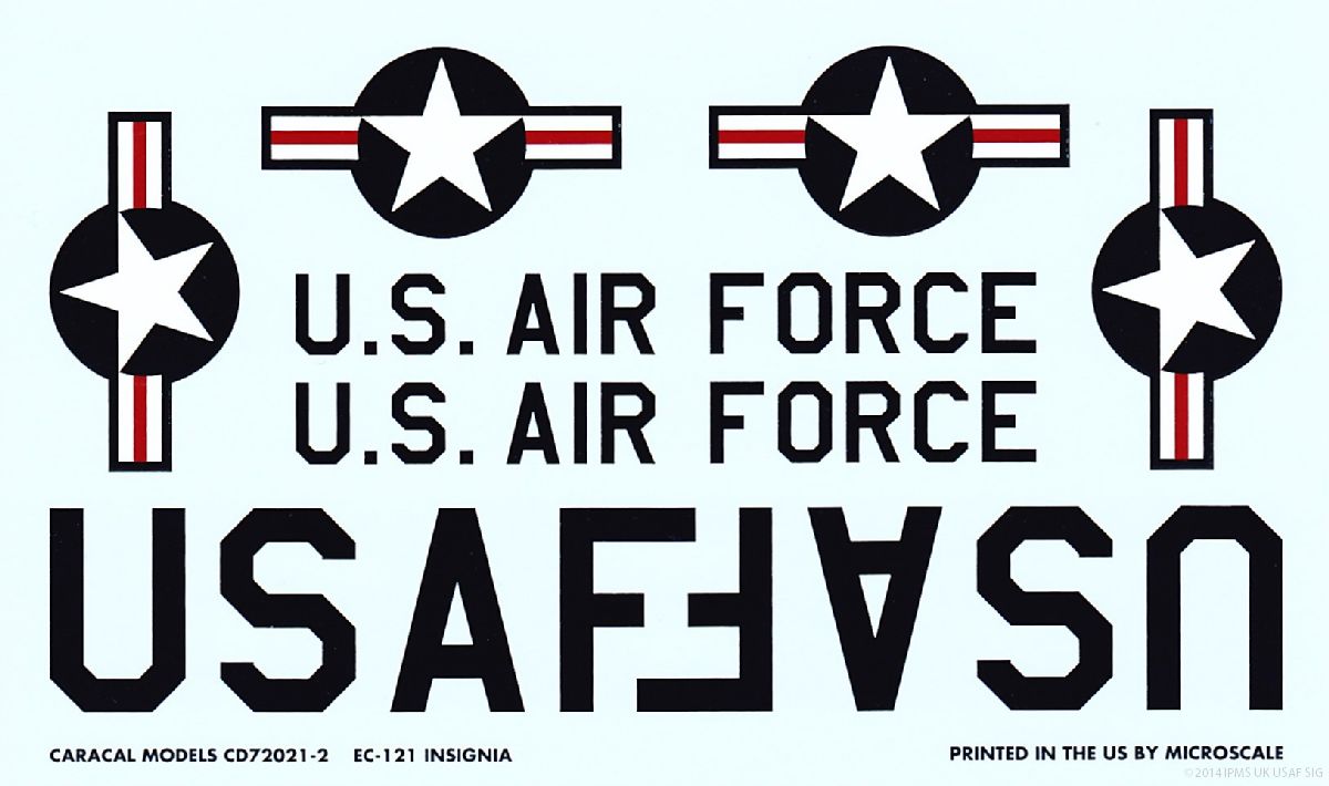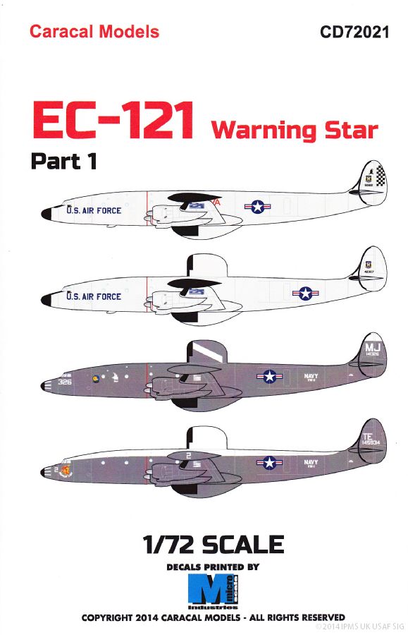 This sheet from Caracal Decals (CD72021) covers 2 USAF EC-121Ts and a Navy WV-2 and WC-121N. The USAF airframes are:-