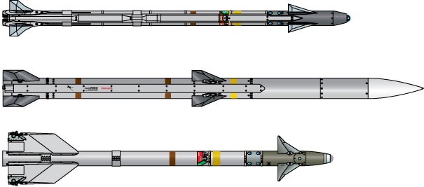 AIM-120s need a better demarcation line between the radome and guidance section; the gray body starts 19-inches back from the tip of the white radome. At least these nicely represent the live missiles and not the blunter-nosed trainers.