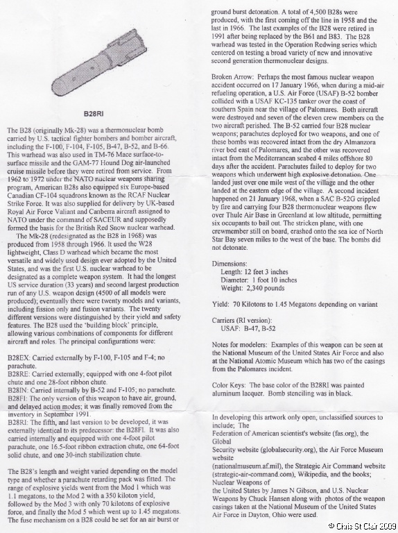 The B28RI was carried by a number of USAF fighters and bombers, including the F-100, F-104, F-105, B-47, B-52 and B-66. It was produced between 1958 and 1966 and there were around 20 different variants.