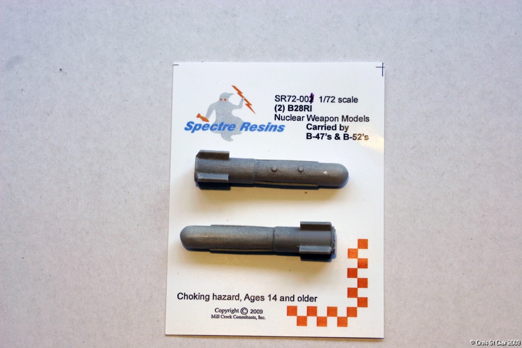 Spectre Resins is a new range of resin accessories produced by Mark S Bilas of Wolfpack Decals fame. This is his first release, the B28RI nuclear weapon (previously the Mk28).