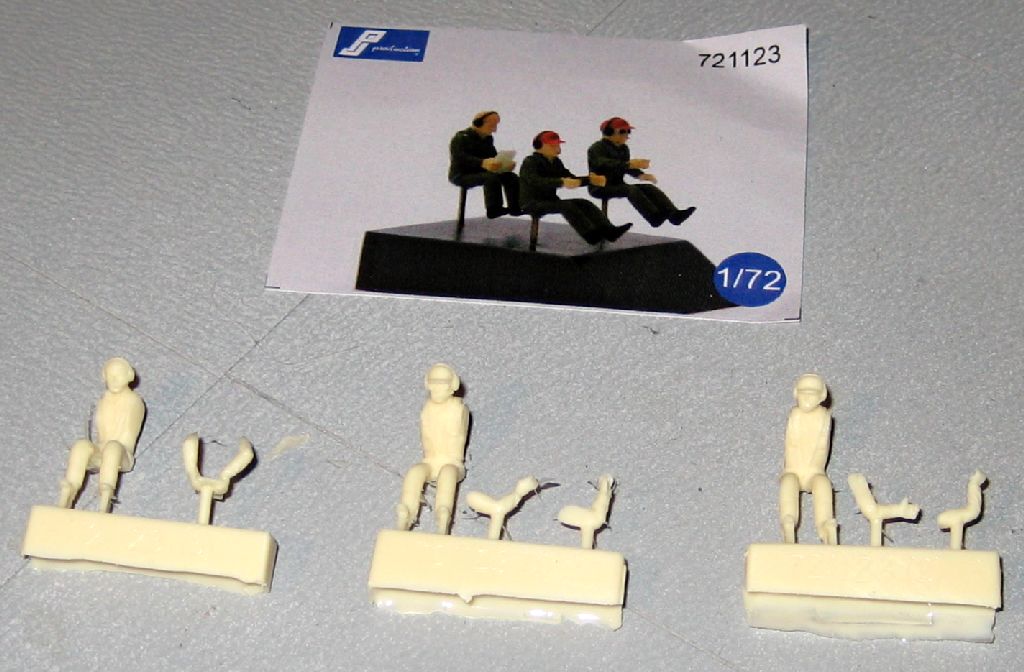 The figures are crisply moulded and look very representative. When sitting on a pencil, they tend to have a bit of a head down attitude, but look more lively in an aircraft. A better modeller might be able to paint the headset mikes a little more finely.