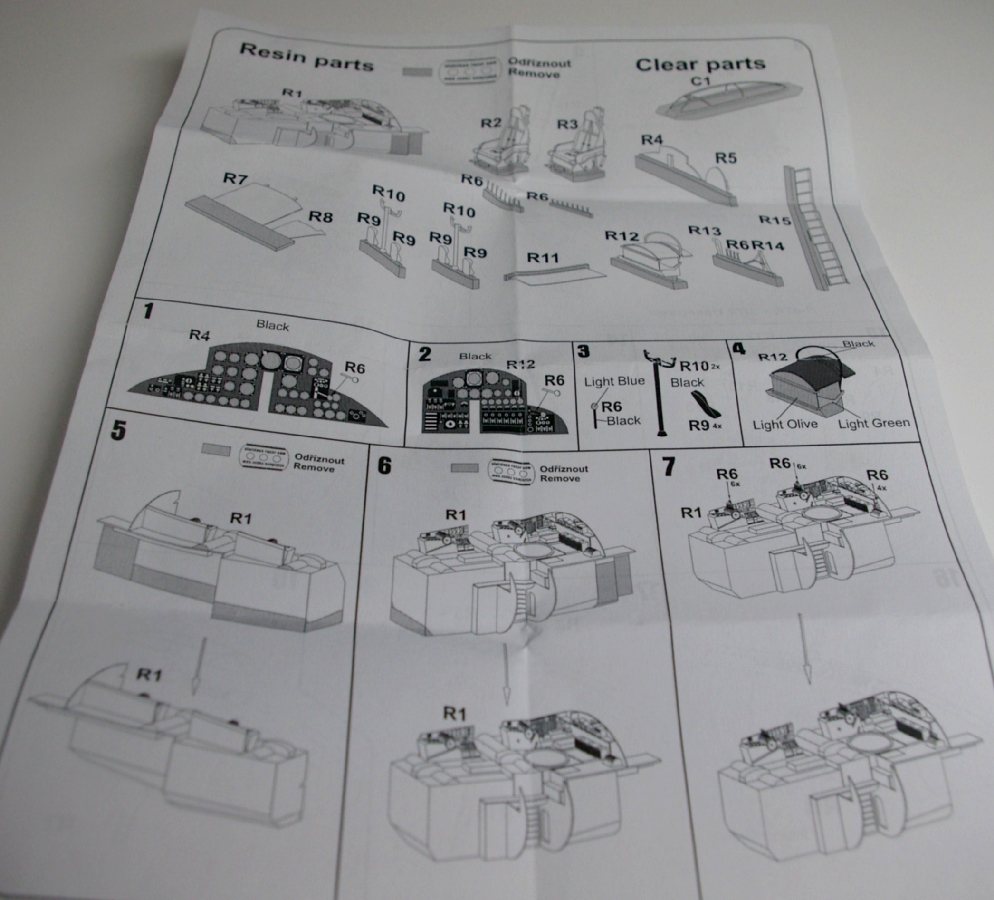 As can be seen from the pictures, the major cockpit structure is cast as a single part and requires quite a bit of resin to be cut away prior to fitting (the areas to be removed are marked with cross-hatching on the casting). The vac form canopy and ejection seats are available to buy separately in sets S72078 (Weber ejection seat for B-47E) and V72-102 (B-47E Clamshell canopy).